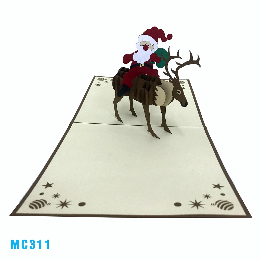 Santa Claus on Reindeer Pop Up Card is a unique gift for your family and friends on this holiday! This card is perfect for celebrating Christmas together.